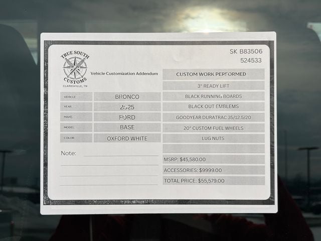 2025 Ford Bronco Base Oxford White 4WD 2.3L EcoBoost I-4 10-Speed Automatic 4D Sport Utility