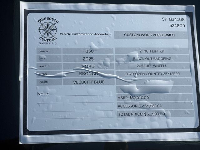 2025 Ford Bronco Big Bend Velocity Blue Metallic 4WD 2.3L EcoBoost I-4 10-Speed Automatic 4D Sport Utility