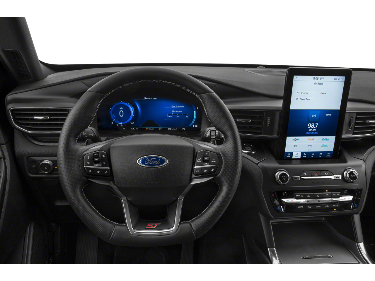 The interior of this Explorer ST is equally impressive, with premium leather-trimmed sport seats, a heated steering wheel, and a stunning 10-speaker B&O audio system. The advanced SYNC 3 infotainment system with Apple CarPlay and Android Auto integration keeps you connected and in control.