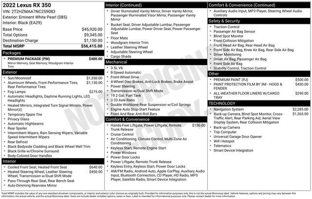 Don't miss your chance to experience the exceptional quality and performance of this 2022 Lexus RX 350. Visit our showroom today and let us demonstrate why this vehicle is the perfect choice for you.