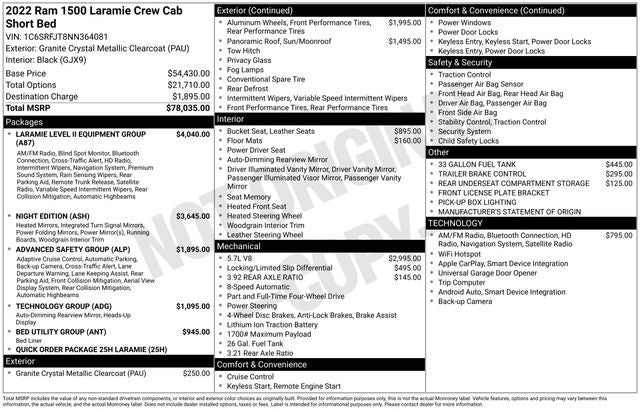 This exceptional vehicle has been meticulously maintained and is ready to provide you with a driving experience that is both powerful and refined. With its impressive HEMI V8 engine, 4-wheel drive, and advanced technology features, the 2022 Ram 1500 Laramie is the perfect choice for those who demand the best.