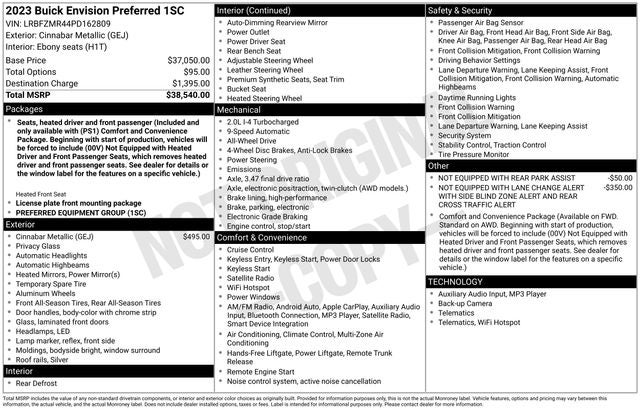 - Envision Driver Confidence includes (PDC) Buick Driver Confidence (Includes (UKC) Lane Change Alert with Side Blind Zone Alert and (UFG) Rear Cross Traffic Alert on vehicles built before October 10, 2022. Beginning October 10, 2022, certain vehicles will be forced to include (00S) Not Equipped with Lane Change Alert with Side Blind Zone Alert and Rear Cross Traffic Alert, which removes Lane Change Alert with Side Blind Zone Alert and Rear Cross Traffic Alert. Beginning with start of production, vehicles will be forced to include (00Y) Not Equipped with Rear Park Assist, which removes Rear Park Assist. See dealer for details or the window label for the features on a specific vehicle.)